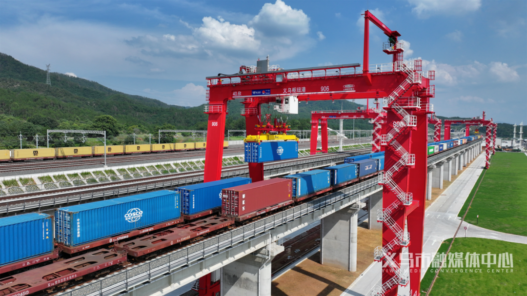 今年2月21日,全省首票“TIR+跨境电商”货物从义乌发运;4月11日,长三角地区首趟整列铁公多式联运班列从义乌铁路西站鸣笛启程;6月17日,浙江中欧班列消费型锂电池混装运输班列长三角首发;6月27日,义乌(苏溪)国际枢纽港一期开港运营,集装箱货物在此“一次申报、一次查验、一次放行”,等同于进入宁波舟山港,世界******小商品集散中心和************大港实现高效连接……